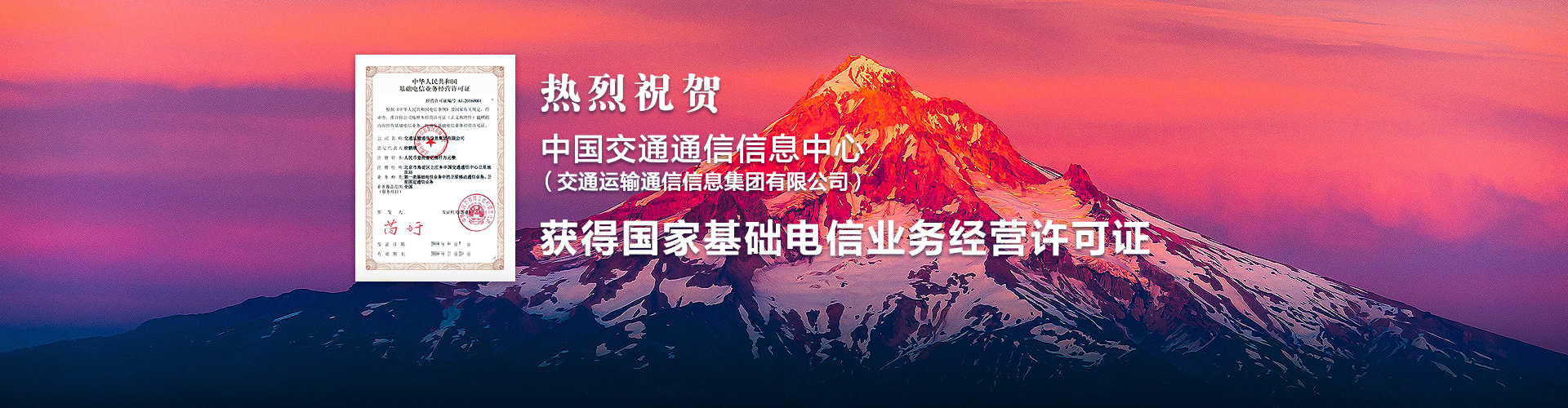 熱烈祝賀中國(guó)交通通信信息中心(交通運(yùn)輸通信信息集團(tuán)有限公司),獲得國(guó)家基礎(chǔ)電信業(yè)務(wù)經(jīng)營(yíng)許可證!